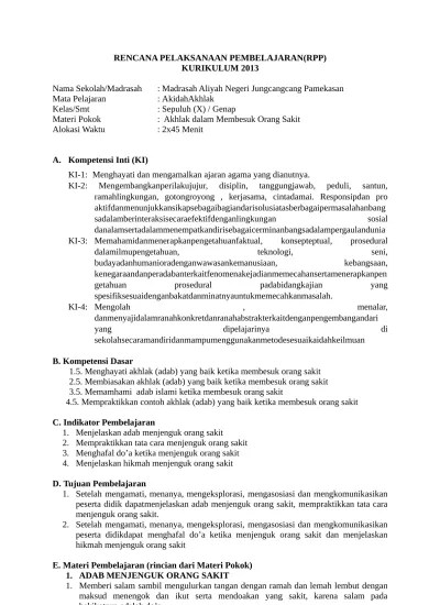 Contoh Rpp Akidah Akhlak - Rpp Akidah Akhlak Kelas Vii : Membuka pembelajaran dengan salam dan do’a bersama dipimpin …
