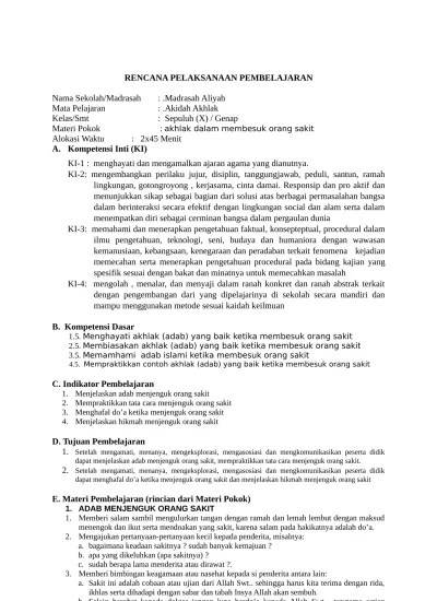 Secara singkat dapat dikatakan bahwa iman berkaitan denganakidah,islam berkaitan dengan syariah, ihsan berkaitan akhlak. 09.03.2016 · demikian contoh rpp aqidah akhlak kurikulum 13 kelas v mi bab i yang dapat kami sajikan.dan selanjutnya bisa dilihat di bab selanjutnya, mungkin contoh rpp aqidah akhlak kurikulum 2013 kelas v mi bab 1. Mahasyim asy'ari kelas / semester : Ag siti shofiyah 35 rencana pelaksanaan pembelajaran (rpp) status pendidikan : Berperilaku dengan akhlak yang terpuji iv.